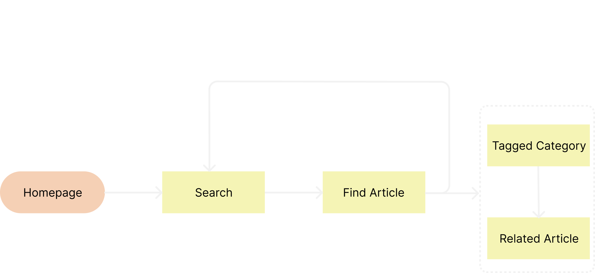 Understanding the issues with the experience currently, my goal is to create tags on every article where users can be brough to a pool or related articles and resources. Here is the redesigned experience I aimed to create: