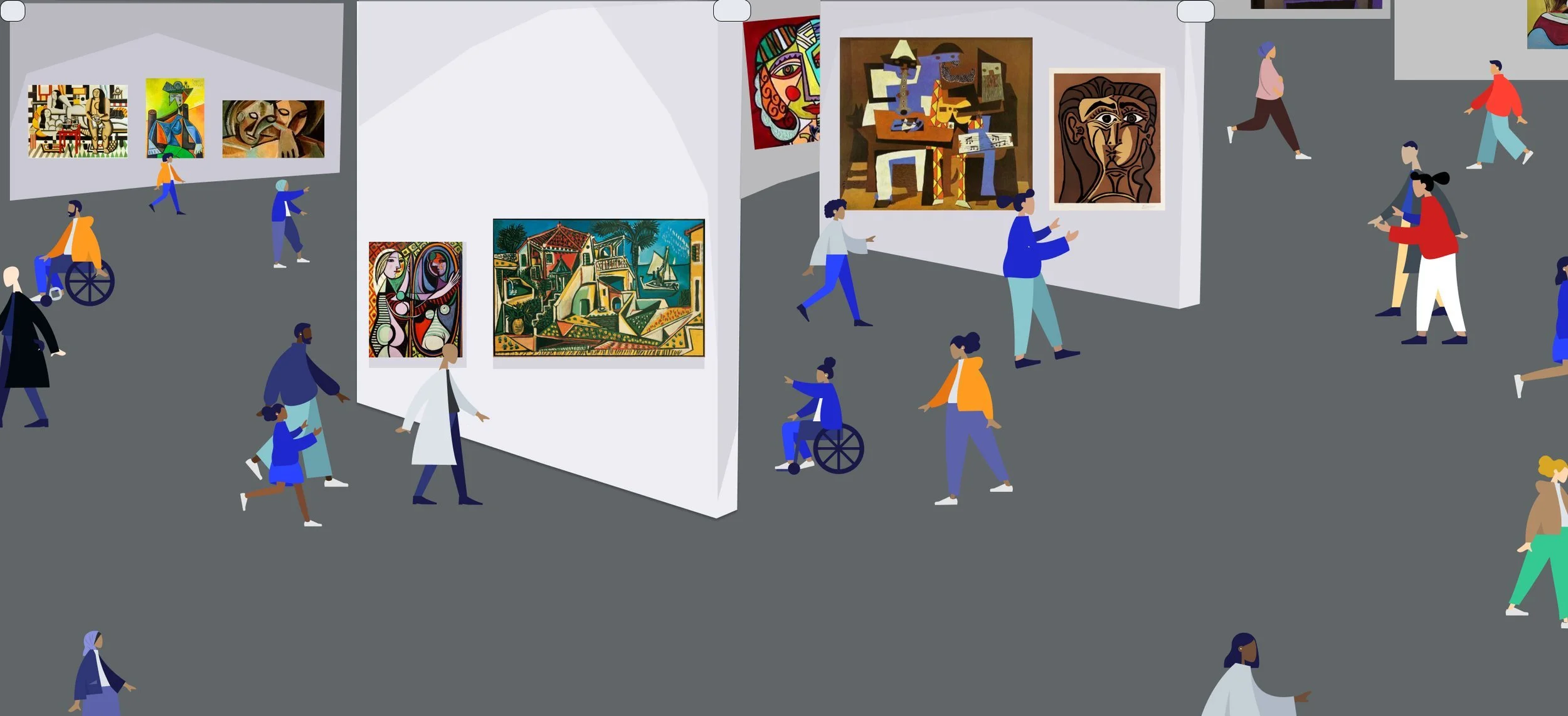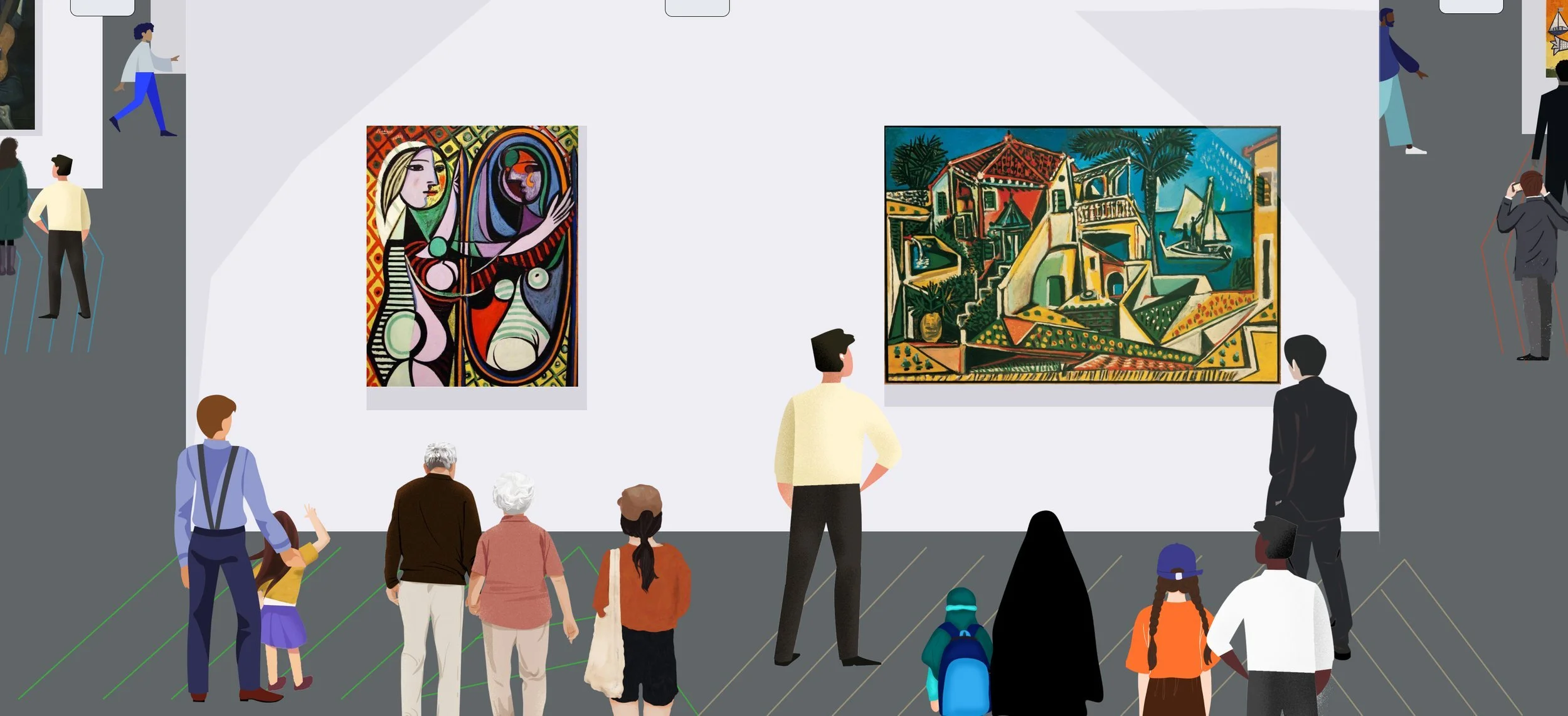If the user is standing in Picasso’s blue period, that is what is going to be played for them. If the user walks by specific artwork the user will get a backstory on that period of the artist’s life and about the art piece in general. The goal was fun well narrated interactive experience for all users to enjoy. Predominantly most users will download the app before entering the exhibition as shown below in the graphic of users scanning the QR code and downloading the app.