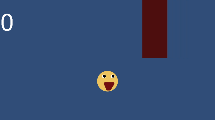 The game features a live score counter for users to keep track of their progress and a Game Over screen that appears when the user collides with obstacles.